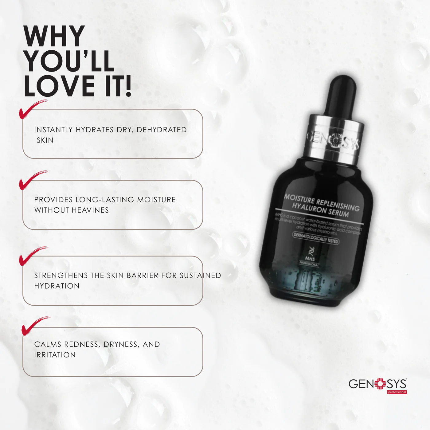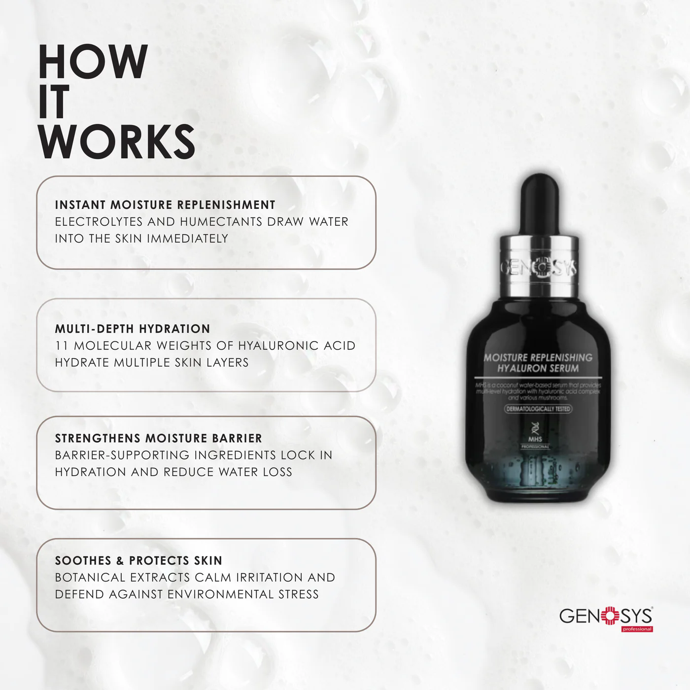 Hyaluronsyra (flera molekylstorlekar) – återfuktar både på ytan och på djupet