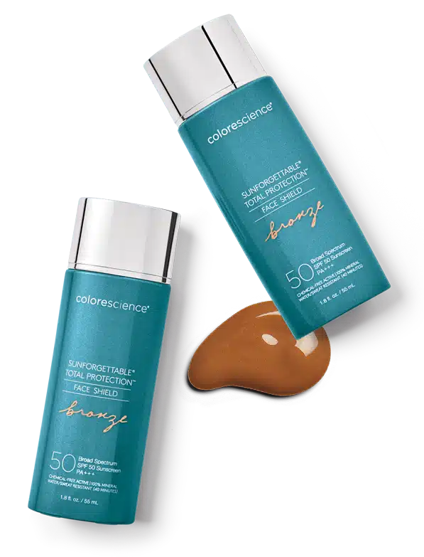 - Face Shield Bronze är ett mineralbaserat solskydd och är inte avsett att absorberas av huden som självbrännare och fläckar gör. Den sitter kvar tills du tvättar bort den!
